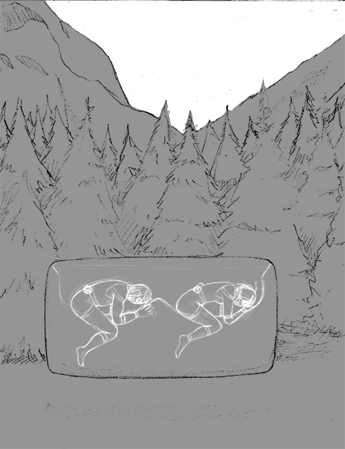 | Initial garbled sketches for the illustration |